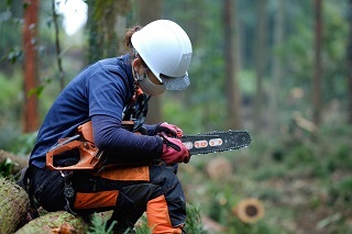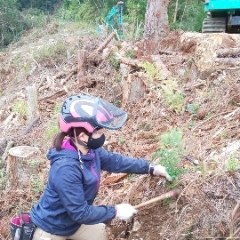 ◆女性も活躍できる職場です。チェーンソー資格を取得後、山での作業にも従事していただいています。
