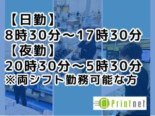 | 勤務地 | 鹿児島県姶良市加治木町木田1377-23 プリントネット株式会社 九州工場 |